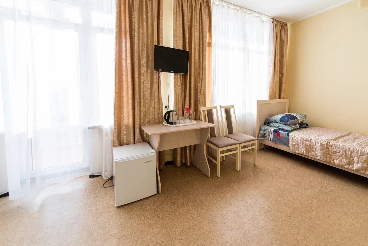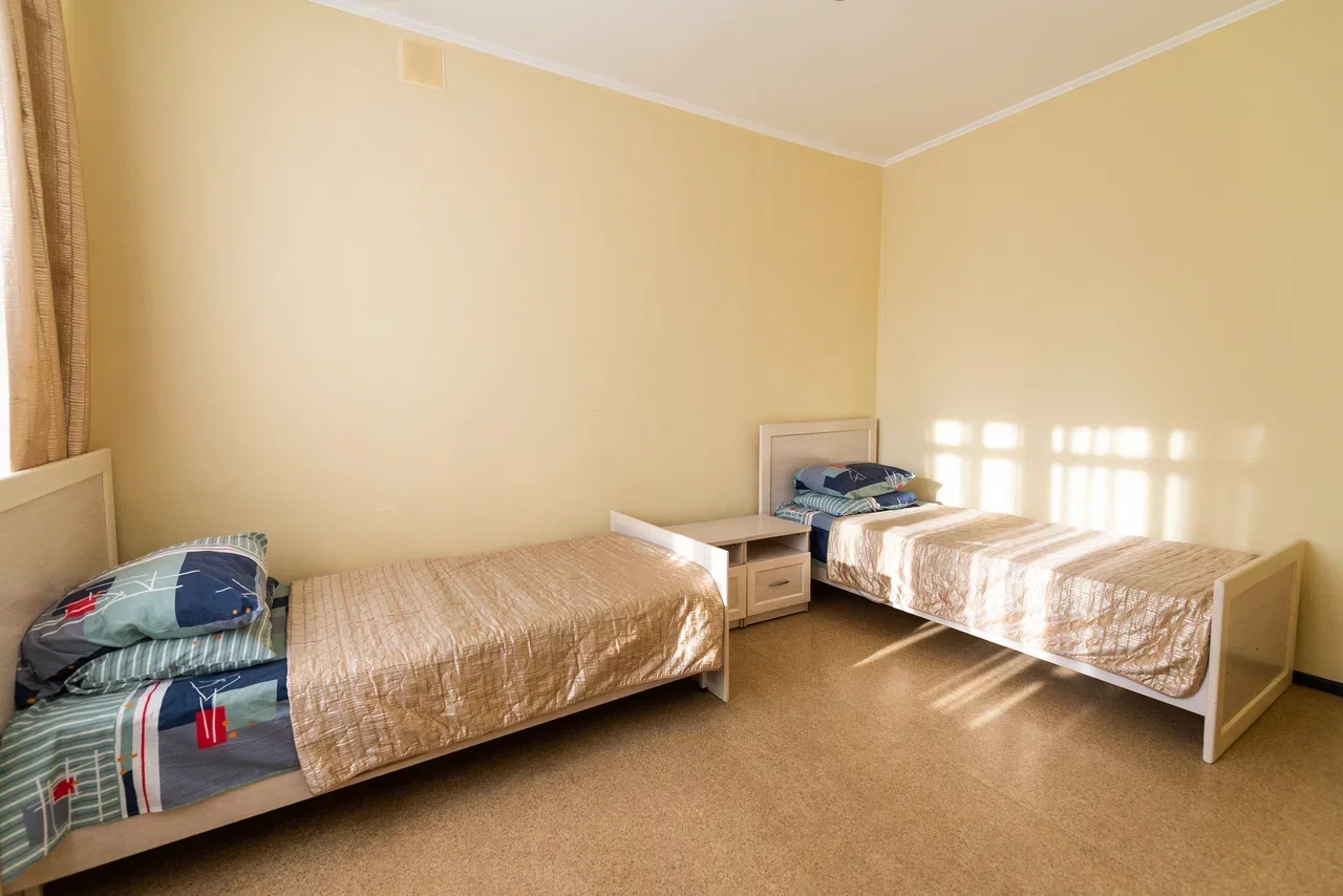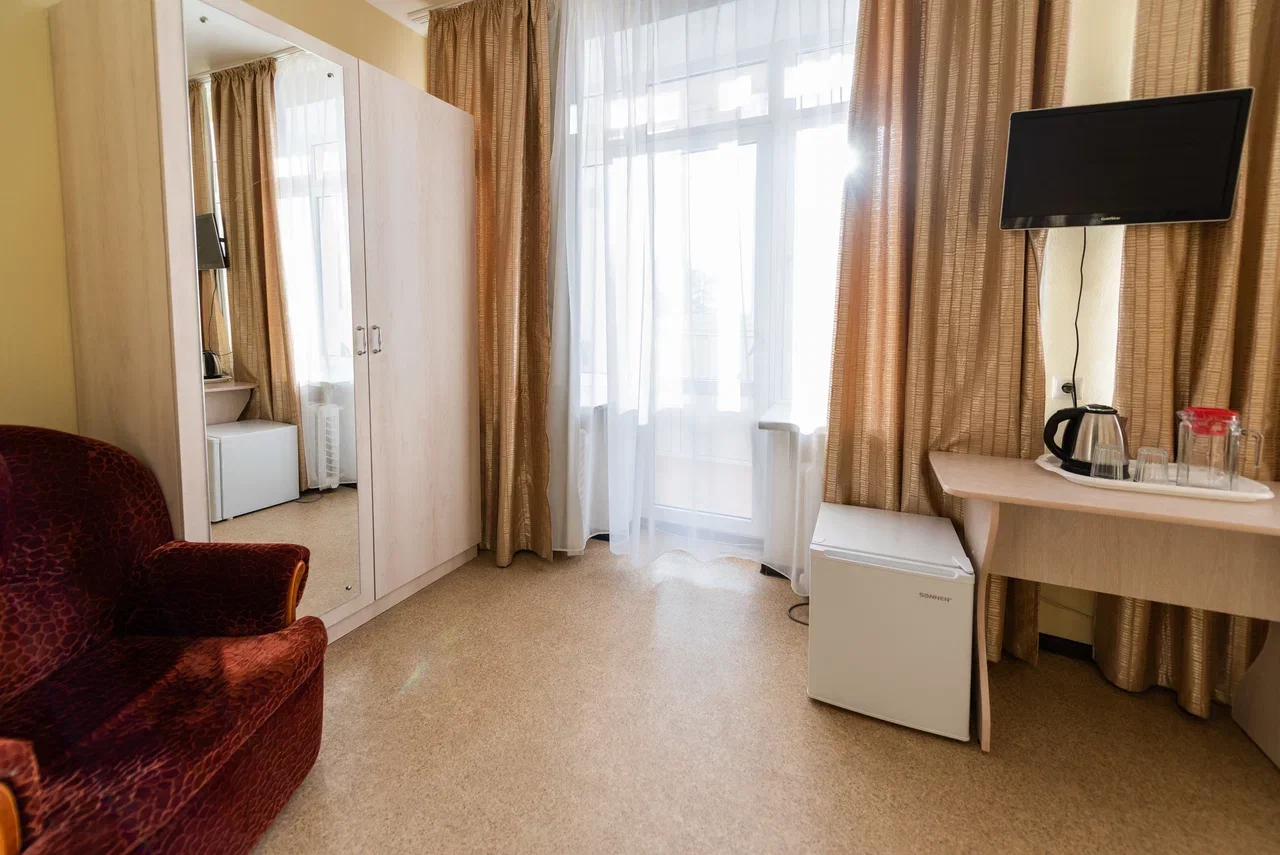 2 осн. места. Мебель: кресло, кровати односпальные, прикроватные тумбочки, стол, стулья, шкаф. Оборудование: сушилка для белья, телевизор, холодильник, чайный набор посуды, электрочайник. Санузел: с душевой кабиной, туалетные принадлежности. Сервис: смена полотенец, смена постельного белья, уборка номера.